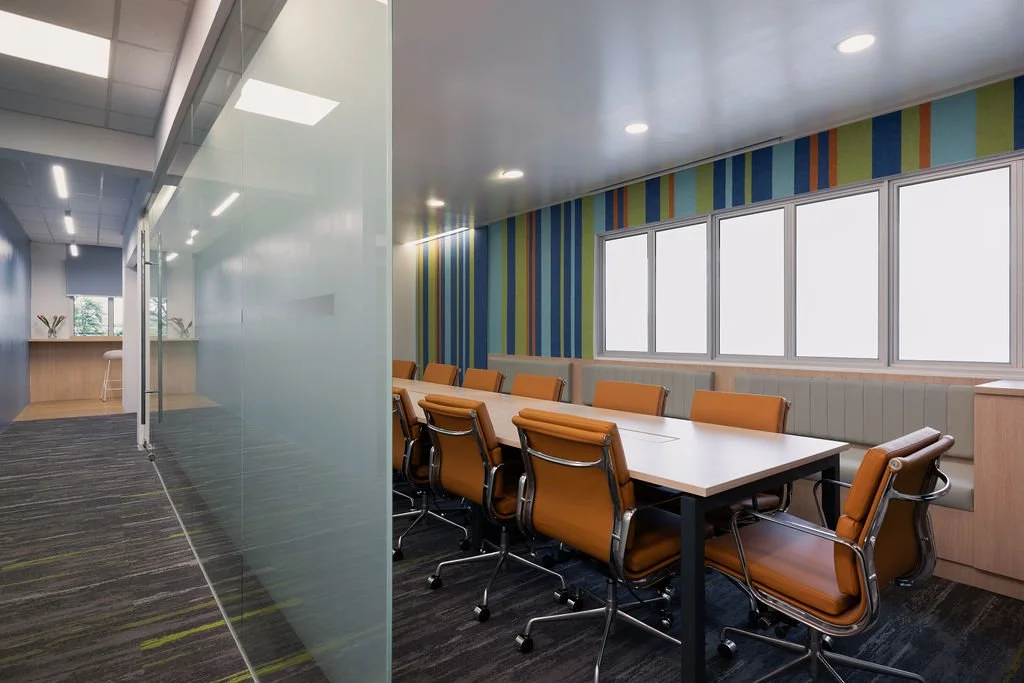 Private offices enclosed in glass reinforce the company’s open-door culture — transparent yet respectful of privacy. Together, these spaces express a design philosophy that values both collaboration and individual focus.